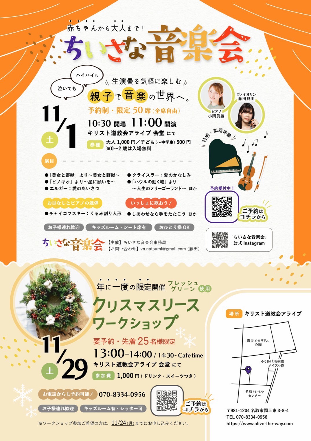 私が主催している『ちいさな音楽会』公式HPでもコンサート情報を掲載しています。